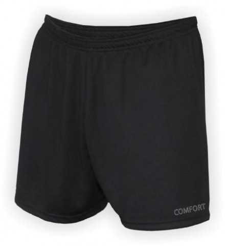 Sportovní černé kraťasy pro muže. Pohodlný volný střih s pružným pasem a všitými spodky z funkčního úpletu. Rychleschnoucí nemačkavý úplet ve složení 100% polyester, gramáž 180 g/m2